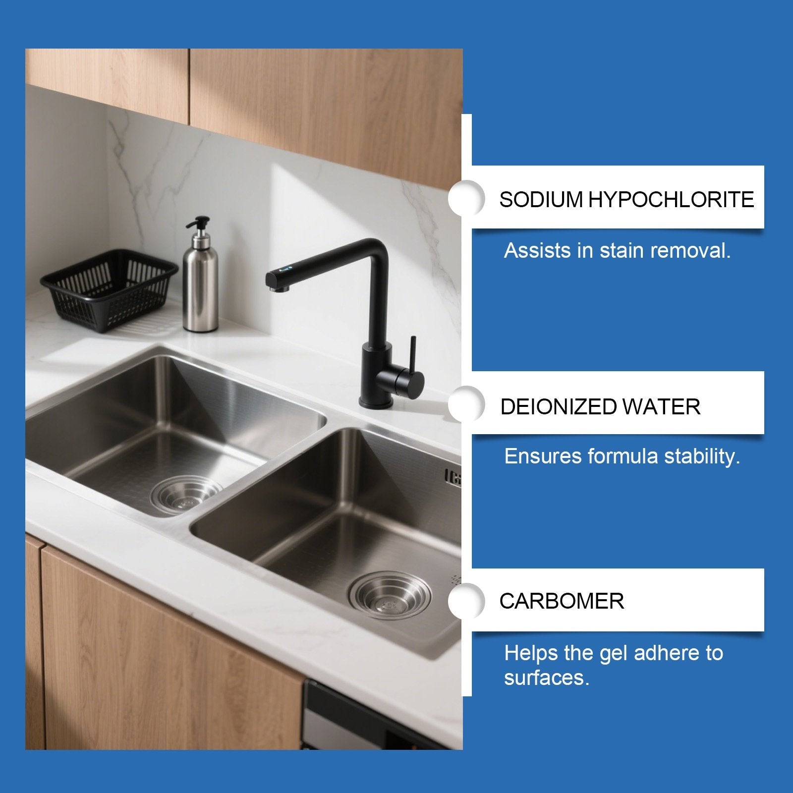Trotz seiner starken Reinigungskraft ist die Formel nicht korrosiv und schonend zu Oberflächen. Sie ist sicher in Haushalten mit Kindern oder Haustieren anwendbar und reinigt effektiv, ohne das Material zu beschädigen oder aggressive chemische Rückstände zu hinterlassen.
