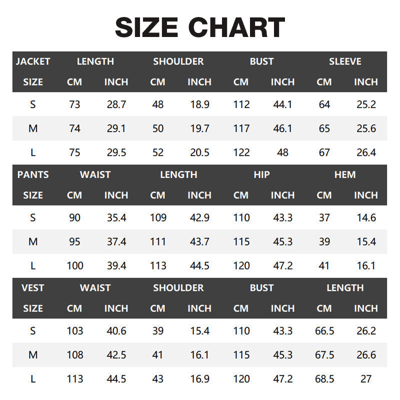 DREITEILIGES SET - Beinhaltet ein passendes Sakko, eine Weste und eine Hose für einen vollständigen, abgestimmten Look. Dies spart Zeit und Mühe beim Styling und sorgt dafür, dass bei jedem formellen Anlass stets eine elegante und perfekt gekleidete Erscheinung gewährleistet ist.
