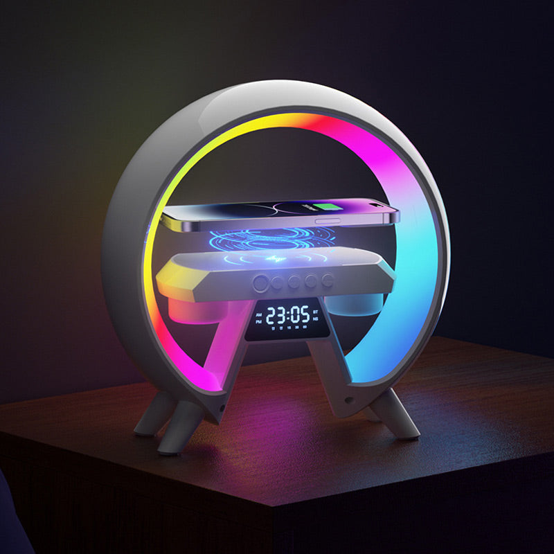 Multifunktionale Stimmungsbeleuchtung mit kabellosem Ladegerät + Bluetooth-Lautsprecher + Uhr